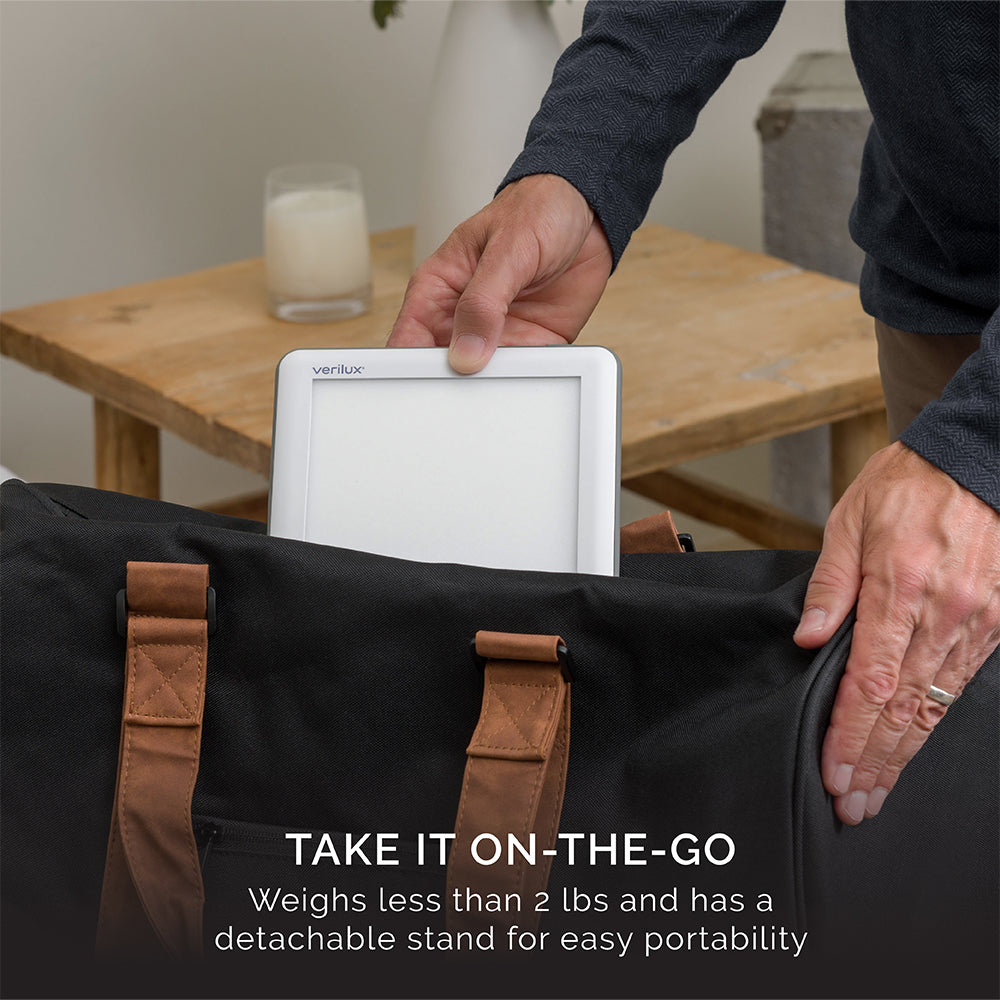 What makes this HappyLight® unique is that its small size means it can more easily fit into your day-to-day routine. Use it while checking emails, reading a book, or while working at your desk. Even pack it up and take it with you on the road.