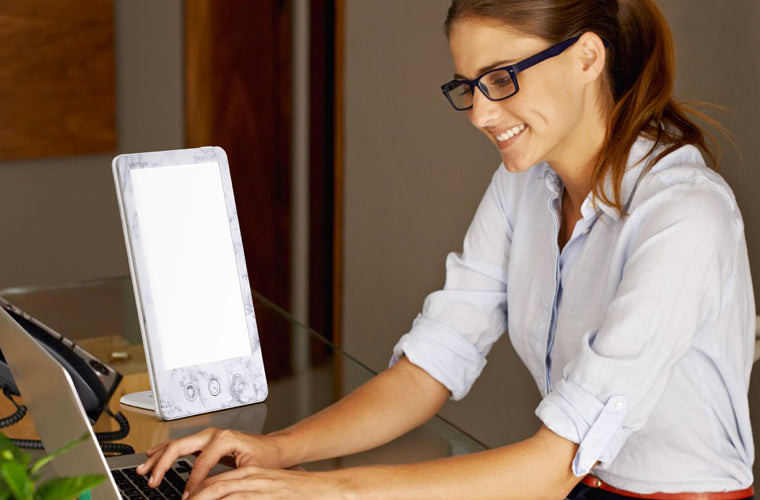 Enjoy the uplifting power of bright light therapy with the HappyLight® Luxe Light Therapy Lamp. Designed to boost your mood, improve your sleep, enhance your focus, and kickstart your energy, HappyLight® Luxe safely brings daylight indoors by emitting a bright white light that mimics sunlight. The daily dose of 10,000 LUX you get from our light therapy lamps can make every morning a little bit brighter. The ultra-sleek and thin design looks great on tabletops and can even be mounted on a wall. Personalize your settings with the 4 brightness levels, 3 color temperature settings, and countdown timer to fit into your daily needs and routine. Enjoy rejuvenating light therapy on your terms with the HappyLight Luxe from Verilux.